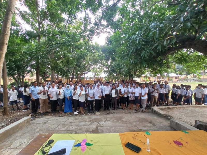 Siswa-siswi di SMPN 1 Komodo Labuan Bajo menerima ...