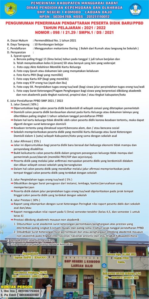 PENDAFTARAN PESERTA DIDIK BARU SMP NEGERI 1 KOMODO